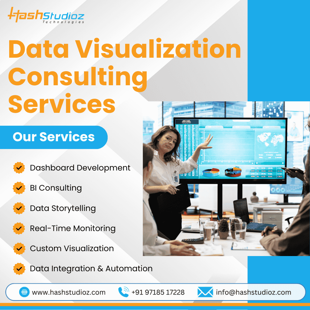 Hashstudioz Technologies offers top-notch Data Visualization Consulting Services in the USA and Australia, helping businesses turn raw data into actionable insights. With our Data Visualization Consulting Services, you can simplify complex information, identify trends, and make informed decisions with confidence. Our team specializes in designing interactive dashboards, intuitive reports, and real-time analytics tailored to your business goals. At Hashstudioz Technologies, we ensure that your data works smarter, enabling you to drive growth, efficiency, and performance. Trust our Data Visualization Consulting Services to unlock the full potential of your data and empower your business strategy.