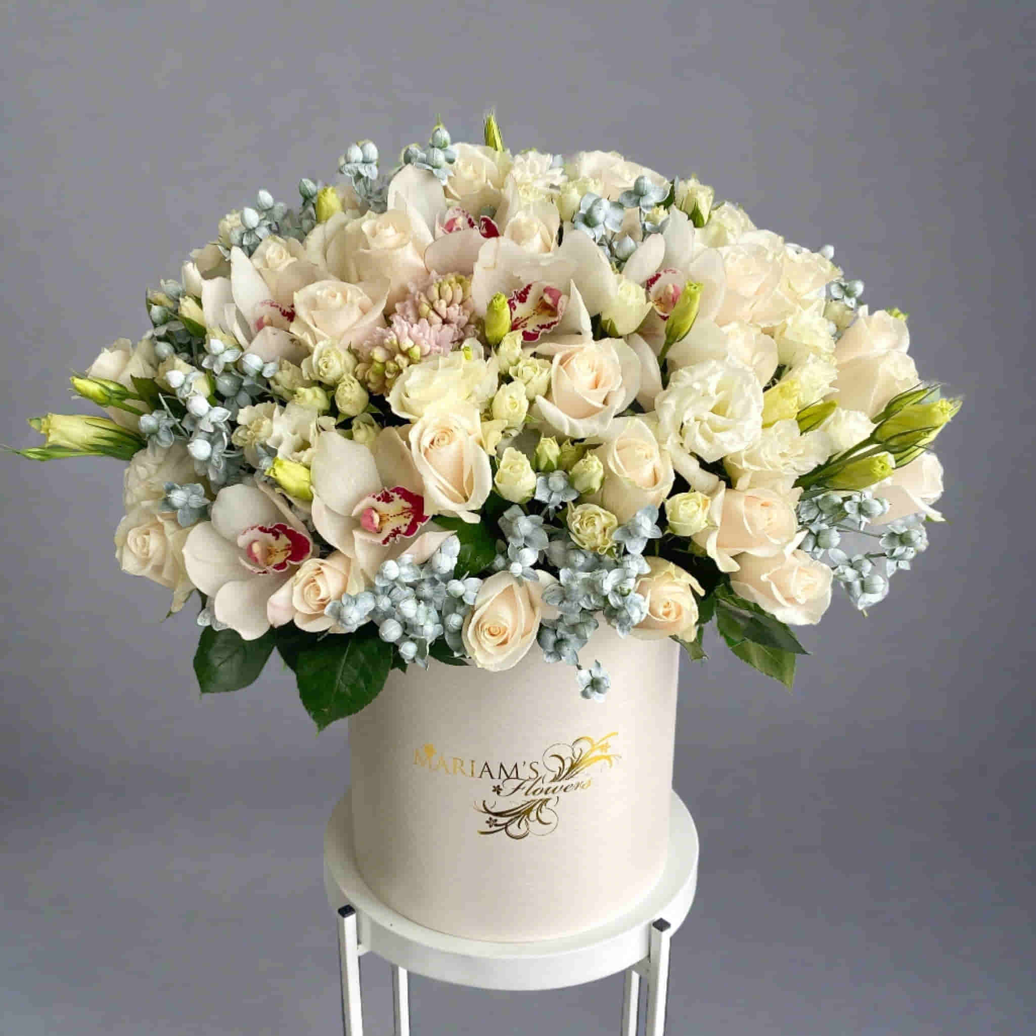 Browse through our carefully designed collections, featuring various styles from wrapped bouquets to elegant boxed arrangements. You can easily order your white roses flower bouquet and have it delivered straight to your door, all while enjoying excellent customer service. Experience the joy of sending and receiving the finest flowers with Mariams Flowers!
