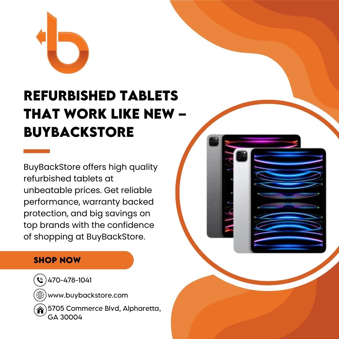 BuyBackStore offers high-quality refurbished tablets at the best prices. Each device is fully tested, certified, and backed by warranty, giving you reliable performance and big savings. Shop today and upgrade smart with affordable refurbished tablets from a trusted source.