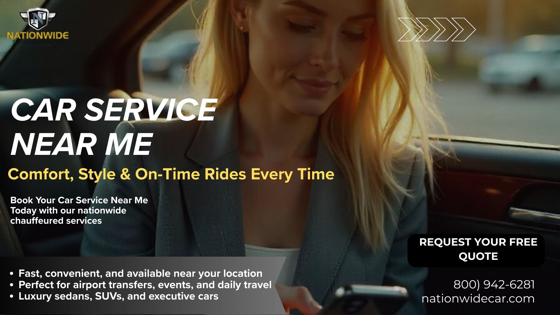 Looking for reliable car services near me? Nationwide Chauffeured Services offers premium, affordable rides for all occasionsairport transfers, weddings, proms, corporate travel, or city commutes. Our fleet includes luxury sedans, SUVs, limousines, and party buses to match every need. Backed by professional chauffeurs and 24/7 availability, we ensure stress-free, safe, and comfortable travel anytime, anywhere. Travel smarter with the convenience of top-rated car services designed just for you.