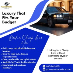 Looking for a Cheap Limo that still delivers luxury? Nationwide Chauffeured Services offers stylish, reliable, and affordable limousine options for every occasion. From weddings to night outs, our limos are maintained to perfection and driven by courteous professionals. Enjoy a five-star experience without paying five-star prices elegance is now within reach!