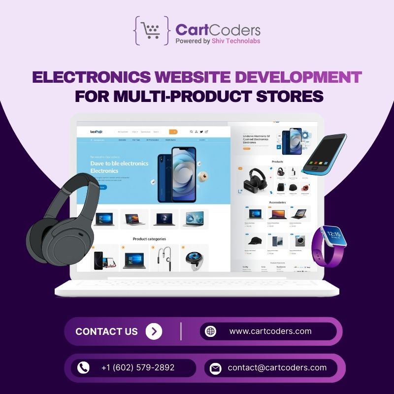 CartCoders is an electronics website development company that builds fast, stable, and sales-focused online stores for brands dealing in gadgets, accessories, and consumer tech. We create clear product pages, strong category layouts, and smooth checkout paths to support higher conversions. We also set up API links, payment systems, and product data structures that support large inventories.