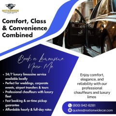Searching for a Limousine Service Near Me that offers elegance, comfort, and reliability? Look no further than Nationwide Chauffeured Services. Whether its a wedding, prom, airport transfer, or corporate event, our professional chauffeurs ensure a seamless, stress-free ride. Our luxurious limos feature modern amenities, plush interiors, and on-time pickupsperfect for any occasion. We take pride in delivering premium transportation at affordable rates, available 24/7 across the U.S.