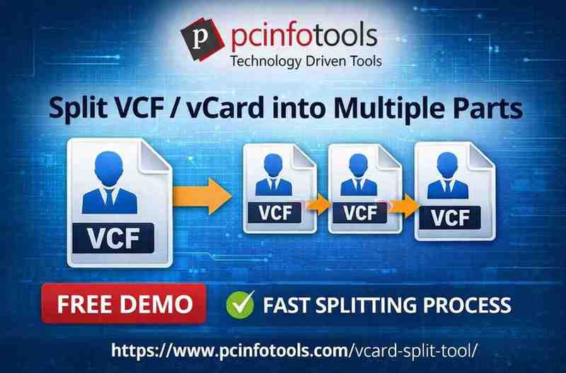 Handling contacts stored in a single VCF file can become complicated, especially when quick access and sharing are required. The PCInfoTools vCard Split Tool helps streamline this process by converting large files into organized individual contacts. This efficient vCard splitter software performs accurate VCF file splitting, ensuring that each contact is separated without losing any information. Important details like names, numbers, email addresses, and images are retained exactly as stored. The software supports files from multiple sources, including mobile devices, email platforms, and cloud services. Tools have no size limitations, it is capable of handling even the large databases contact effortlessly. Its clean and simple interface ensures smooth navigation, allowing the splitting process to be completed quickly. The option to save contacts in MSG format further enhances usability for Outlook users. This VCF file splitter tool is an ideal solution for improving contact organization and simplifying data management tasks efficiently.