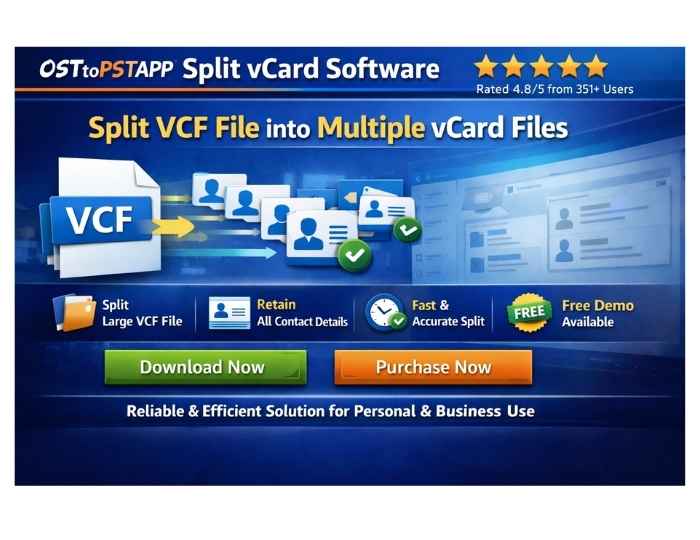Managing a large contact database stored in a single VCF file can slow down access and create difficulties while importing contacts. The SameTools Split vCard Tool provides a safe and efficient way to split VCF file data into multiple individual contact files. This professional vCard splitter allows users to easily split vCard contacts without altering the original contact information. The software is a useful tool. It allows you to separate individual vCards from a single vCard file. When doing this, the process maintains all relevant details. VCard separates all data, including your first and last name; your phone number; your e-mail address; your organization information; and your profile picture. You can use the software with VCard files that were created on a smartphone, an e-mail software, or through some type of cloud service. Compatible with different Windows versions, this tool ensures a smooth and secure contact splitting process, helping users organize large contact files into smaller and well-structured VCF contacts.
