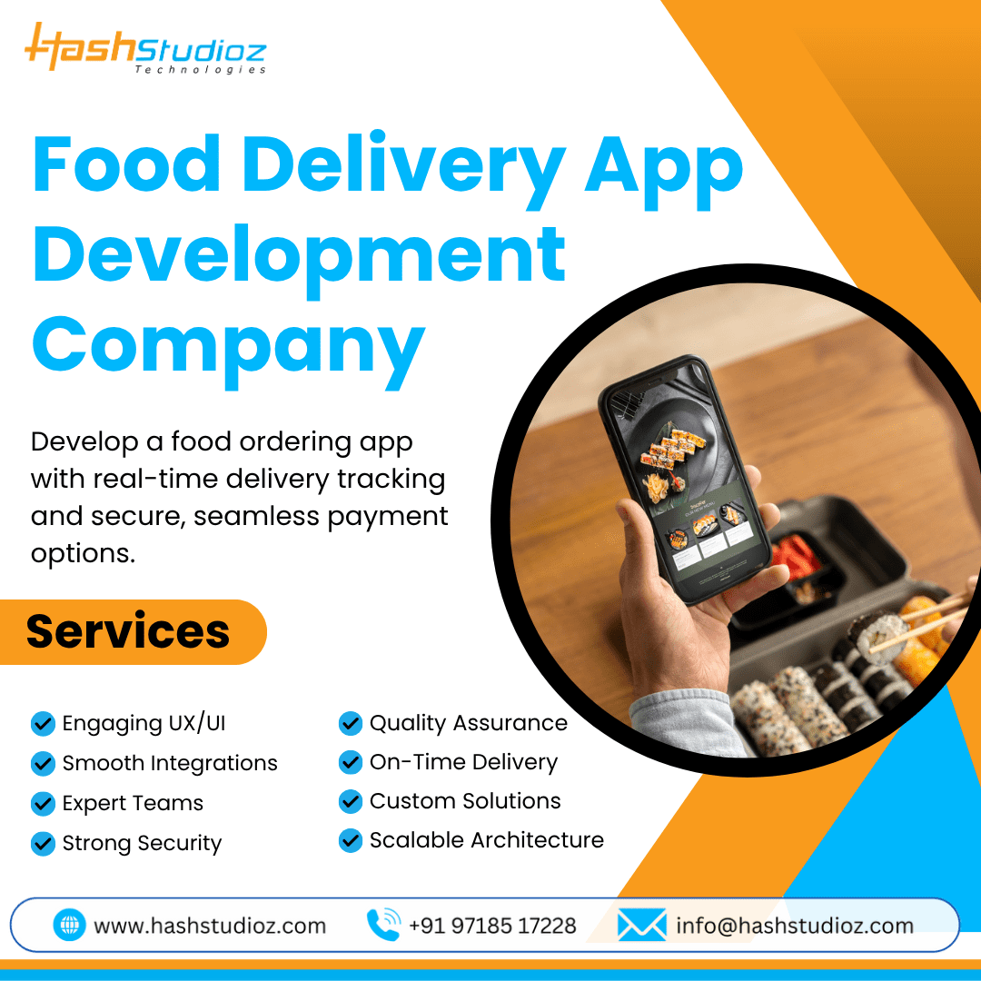 Hashstudioz Technologies is a leading Food Delivery App Development Company offering innovative and scalable app solutions for restaurants, startups, and enterprises. Our Food Delivery App Development Company builds feature-rich applications with real-time tracking, multiple payment options, and user-friendly interfaces. From customized admin dashboards to AI-based recommendation engines, we ensure your business stays ahead in the competitive food tech market. Our developers specialize in creating apps that enhance customer satisfaction and streamline delivery operations with advanced analytics and automation tools. Partner with Hashstudioz Technologies to transform your food business with modern, efficient, and high-performing mobile app solutions.
