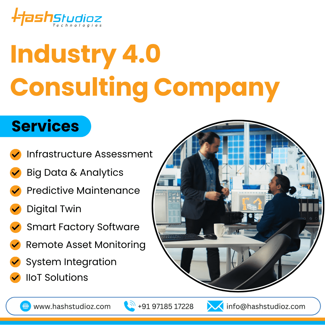 Looking for an expert Industry 4.0 Consulting Company to lead your digital transformation? HashStudioz Technologies delivers smart automation, IoT, AI, and data-driven solutions designed to elevate industrial performance. As a top Industry 4.0 Consulting Company, we help businesses in the USA and Australia streamline processes, enhance productivity, and embrace future-ready operations. Our strategic approach enables real-time monitoring, predictive insights, and seamless integration across systems. With HashStudioz Technologies as your Industry 4.0 Consulting Company, you gain innovation, efficiency, and a competitive advantage. Upgrade your industry with technologies built for the future of smart manufacturing.