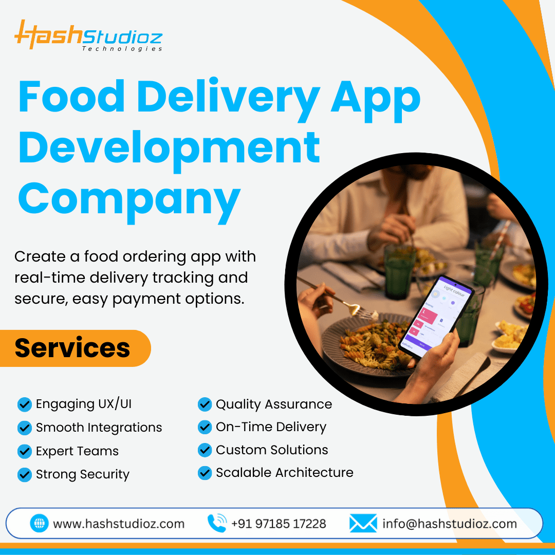 HashStudioz Technologies Company is a top Food Delivery App Development Company helping businesses in the USA and Australia launch high-performance delivery platforms. Our Food Delivery App Development Company focuses on creating secure, intuitive, and feature-rich apps that streamline ordering, tracking, and customer engagement. From restaurant aggregators to custom delivery solutions, we design apps that boost efficiency and user satisfaction. With cutting-edge tech and expert development teams, HashStudioz Technologies delivers scalable solutions tailored to your business goals. Empower your brand with seamless delivery experiences and stay ahead in the competitive food-tech market.