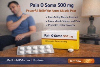 Pain-O-Soma 500 mg is a physician-prescribed muscle relaxant formulated to manage short-term pain associated with acute musculoskeletal conditions. It is commonly recommended to relieve discomfort caused by muscle strains, sprains, spasms, and mino...